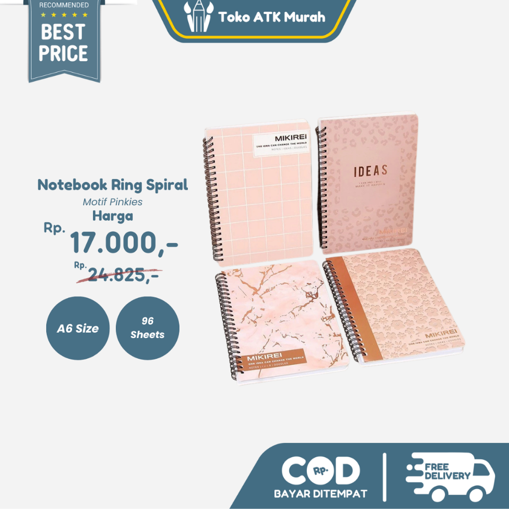 Notebook Mikirei Ring Spiral Journal Pattern Ruled Line Motif Pinkies