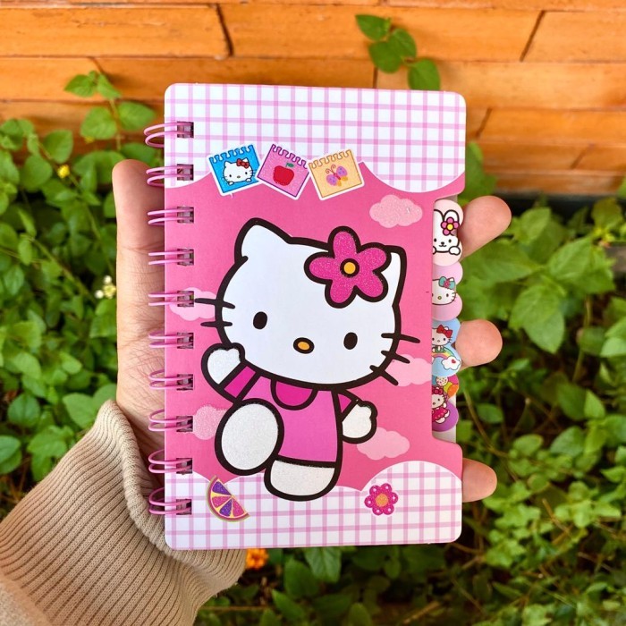 Notebook Mini Hello Kitty Buku Ring A6 Isi 80 Lembar Agenda Kecil