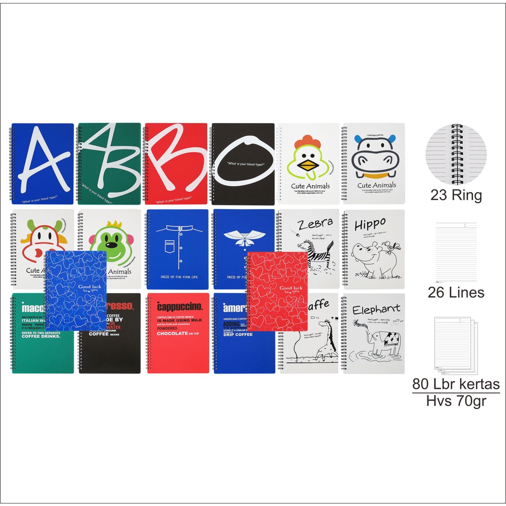 Notebook Spiral A5 Motif / Buku Tulis Spiral / Notes Spiral / Spiral Notebook TOMEX