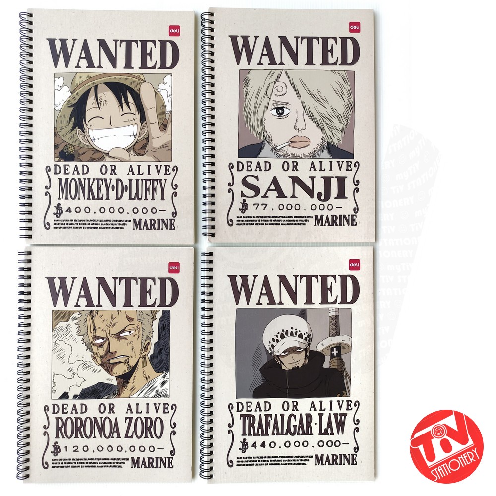 Notebook spiral merek Deli dengan cover motif ONE PIECE bertekstur linen. Isi 60 lembar kertas bergaris. Menggunakan kertas warna beige (gading / putih kekuningan). Harga tertera merupakan harga satuan.