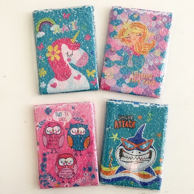 Notebook / diary berbahan sequins.