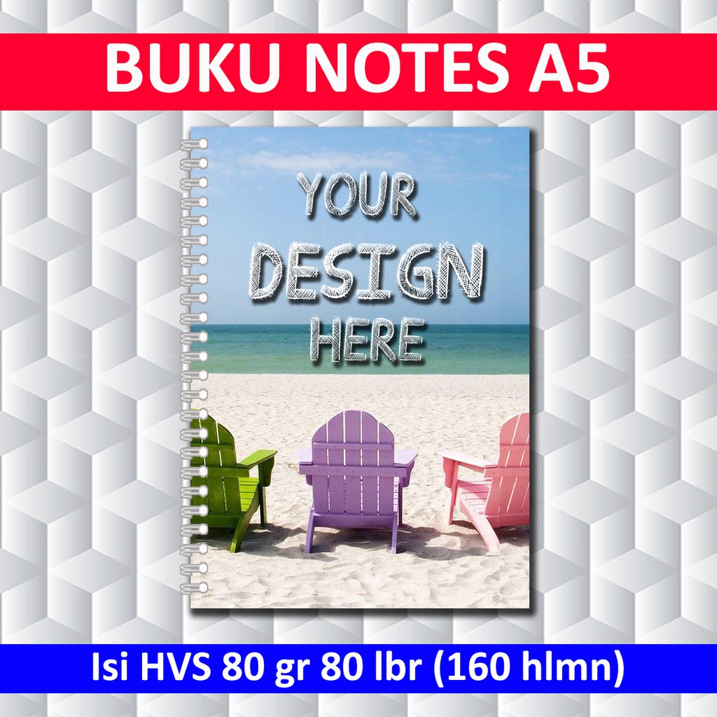 Buku Notes A5 bisa cover sesuai dengan keinginan, cocok untuk buku seminar, souvenir, merchandise, hadiah, ataupun buku harian anda.