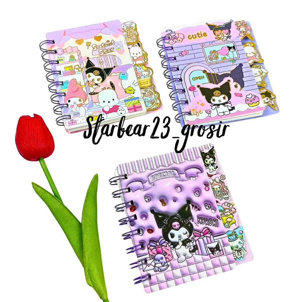 Notes mini dengan ring di bagian sampingnya. Tersedia berbagai macam motif yang bisa Anda pilih.