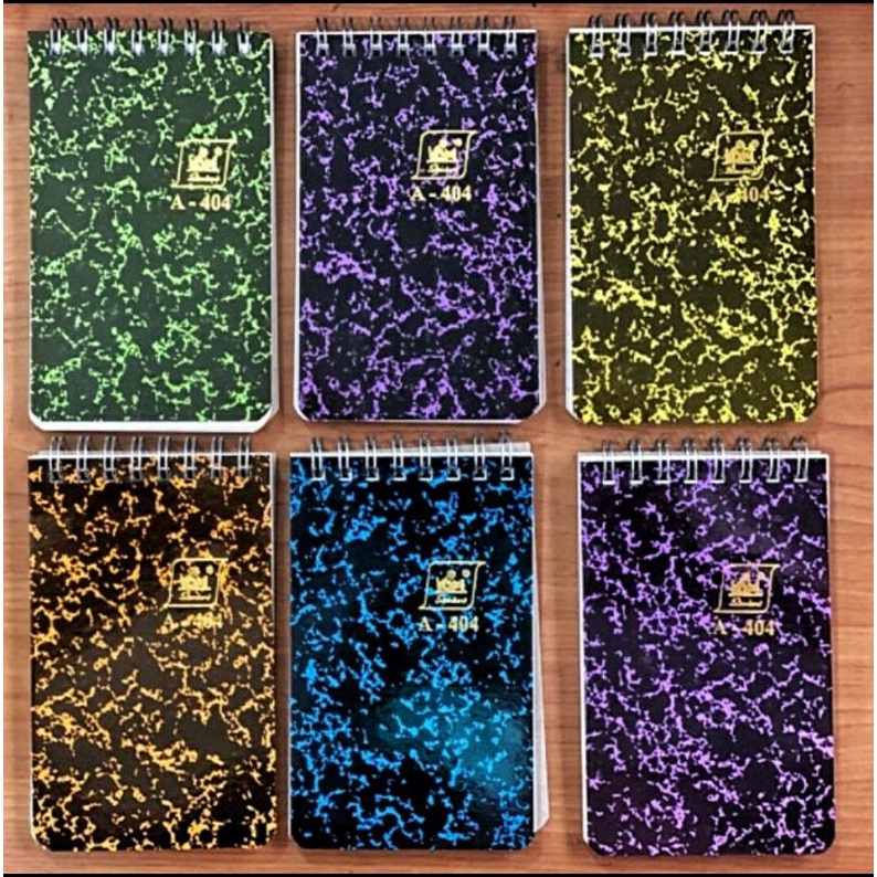 Notes kecil bukaan atas dengan pengkait ulir besi. Cocok untuk catatan saku dan simple dibawa kemana-mana.
