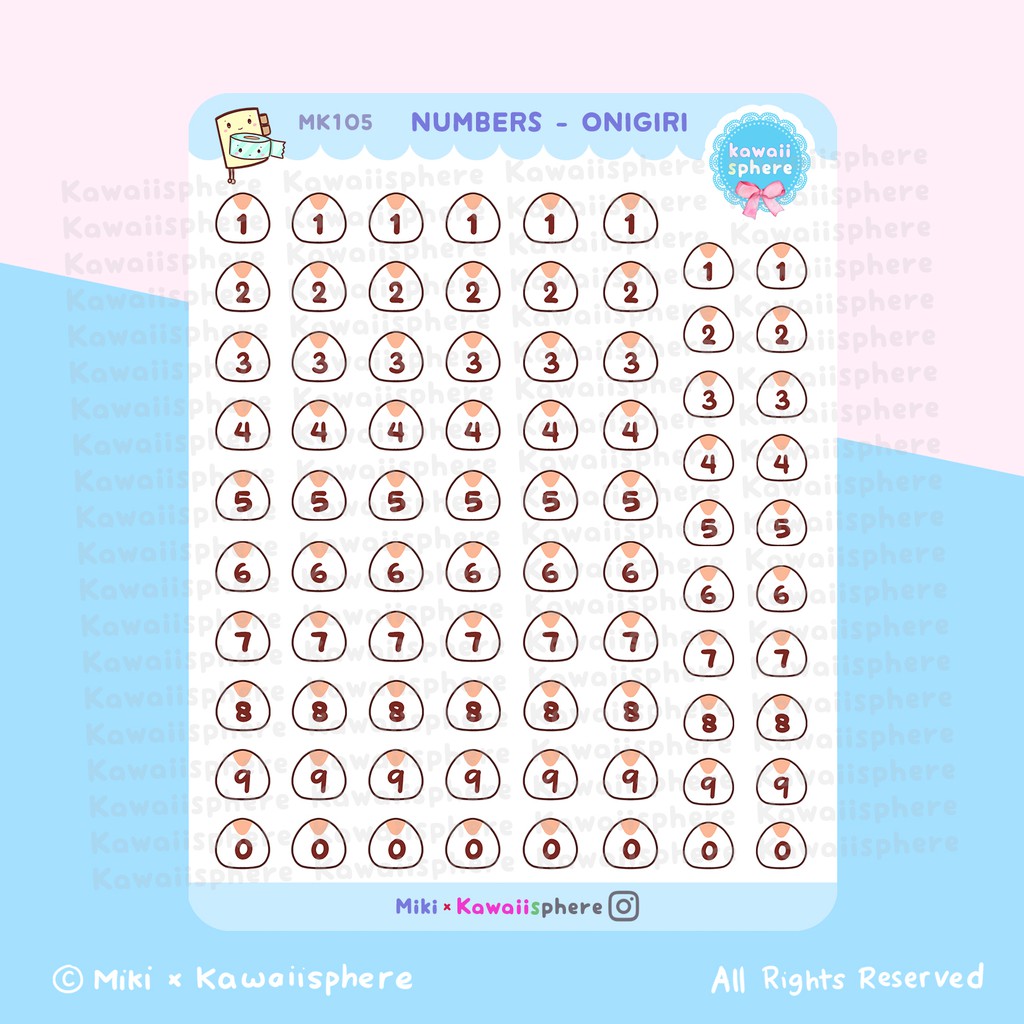 Numbers - Onigiri | Planner Sticker Angka MK105 Kawaiisphere | Writable Waterproof