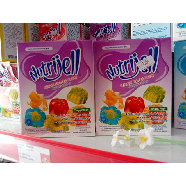 Nutrijell Rasa Anggur (Grape) [10 gram] Nutrijell adalah jeli serbuk yang mengandung rumput laut dan konnyaku. Merupakan agar-agar yang berserat tinggi, di olah dari bahan yang alami. Makanan yang baik untuk seluruh keluarga yang dapat dinikmati pada saat santai