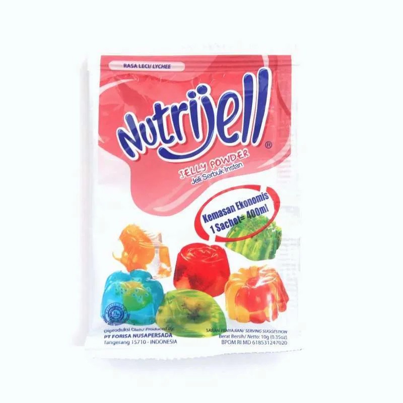 Nutrijell Rasa Leci 10gr adalah jeli serbuk yang mengandung rumput laut dan konnyaku. Merupakan agar-agar yang berserat tinggi, di olah dari bahan yang alami. Makanan yang baik untuk seluruh keluarga yang dapat dinikmati pada saat santai.