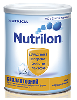 Функциональное детское питание сухая адаптированная молочная смесь Nutrilon «безлактозной» для детей от рождения. У детей с лактазной недостаточностью наиболее эффективным методом лечения является диета с полным исключением лактозы из рациона. Именно для таких малышей в Nutricia создали Nutrilon «безлактозной» - смесь, не содержит лактозы, имеет пониженную осмолярность и содержит сбалансированный набор нуклеотидов и полиненасыщенных жирных кислот для нормального развития всех органов и систем ребенка.