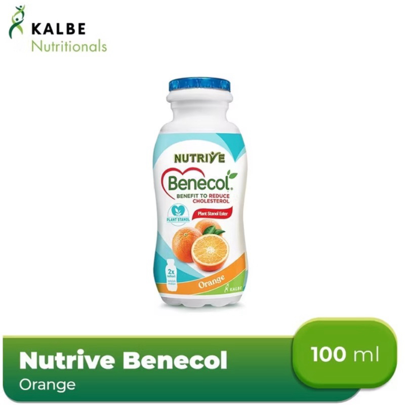 Nutrive Benecol merupakan minuman smoothie (susu dengan sari buah) yang mengandung Plant Stanol Ester (PSE) dan teruji klinis dapat menurunkan kadar kolesterol total 7-10% setelah konsumsi 2 botol/hari rutin dalam 2-3 minggu serta menghindari risiko penyakit jantung koroner.