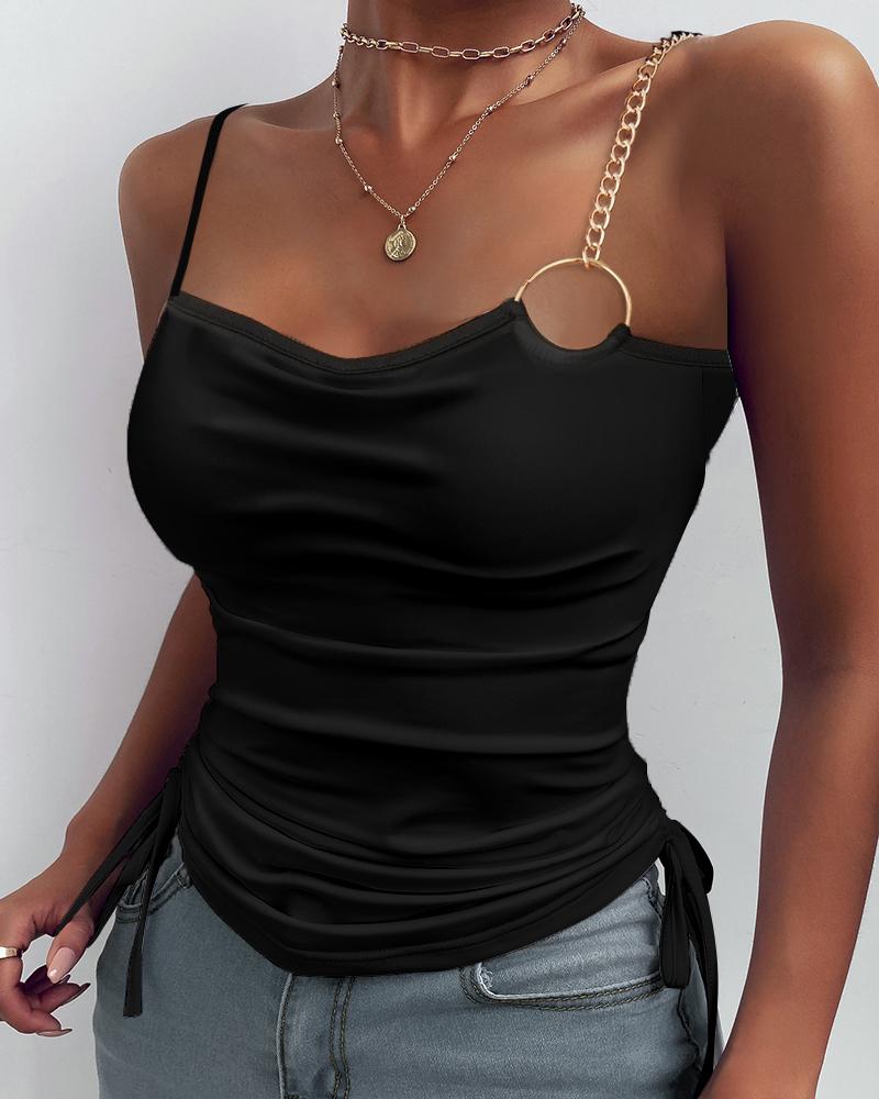 O-Ring Chain Decor Drawstring Ruched Cami Top, Black