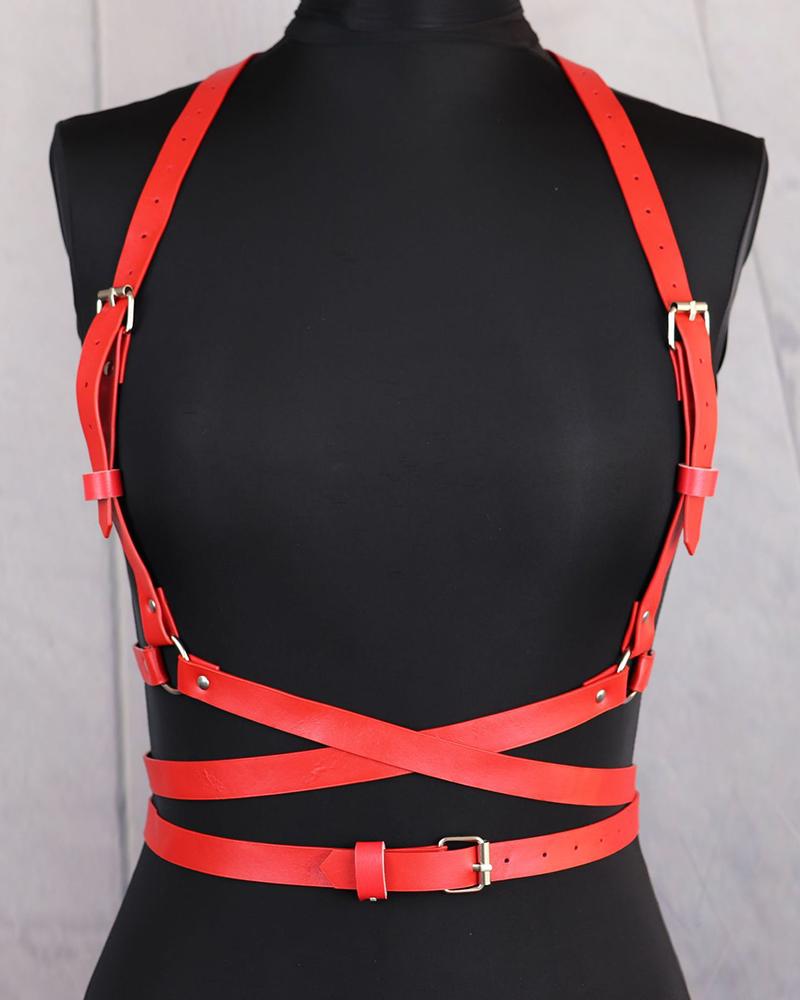 O-Ring Decor Harness Rave Adjustable Body Corset Accessories, Red