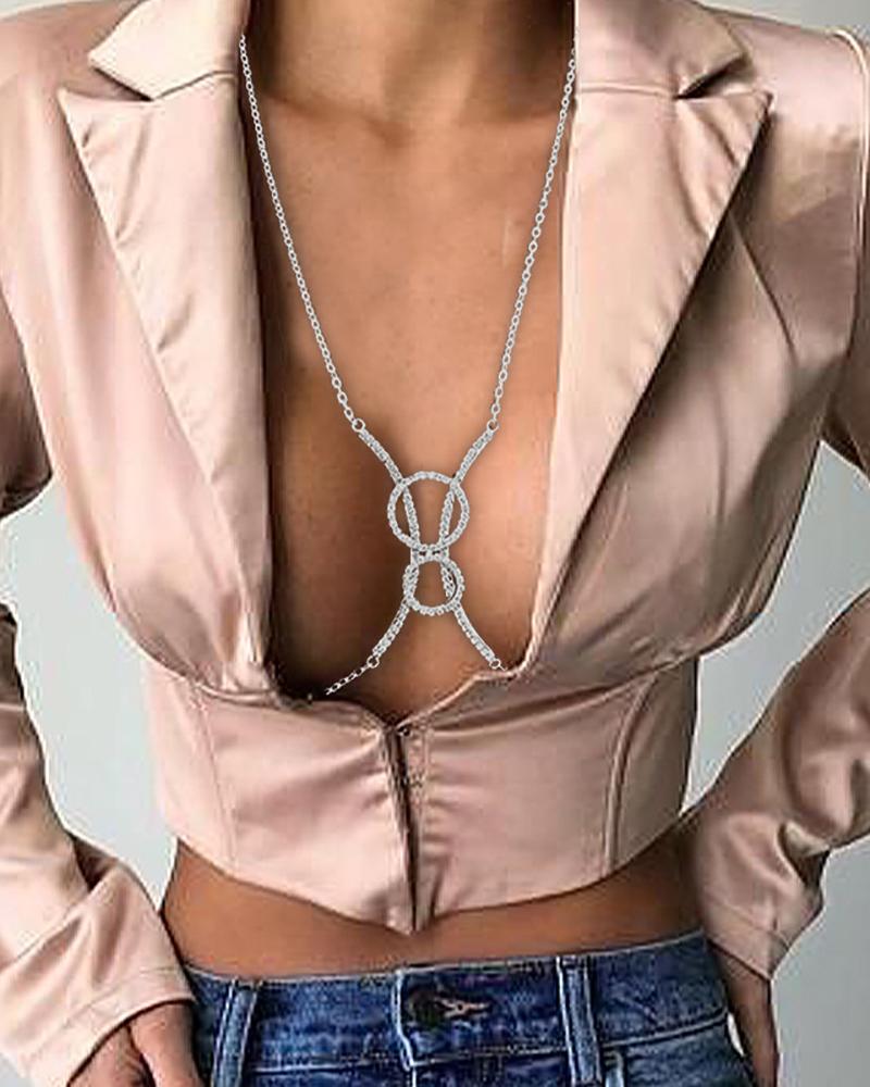 O-Ring Rhinestone Decor Body Chain, Silver