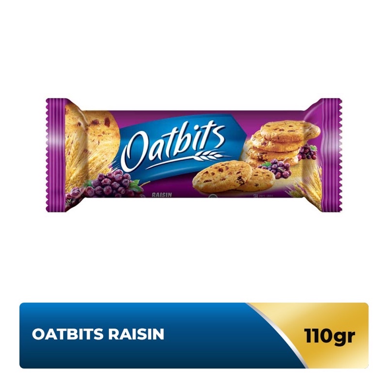 komposisi :Tepung terigu,oat (14.7%),minyak nabati,kismis (6.6%),glukosa,whey bubuk,pengembang (natrium bikarbonat),amonium bikarbonat,kalsium karbonat,garam,pengemulsi lesitin kedelai,perisa sintetik vanilla,pewarna tartazin