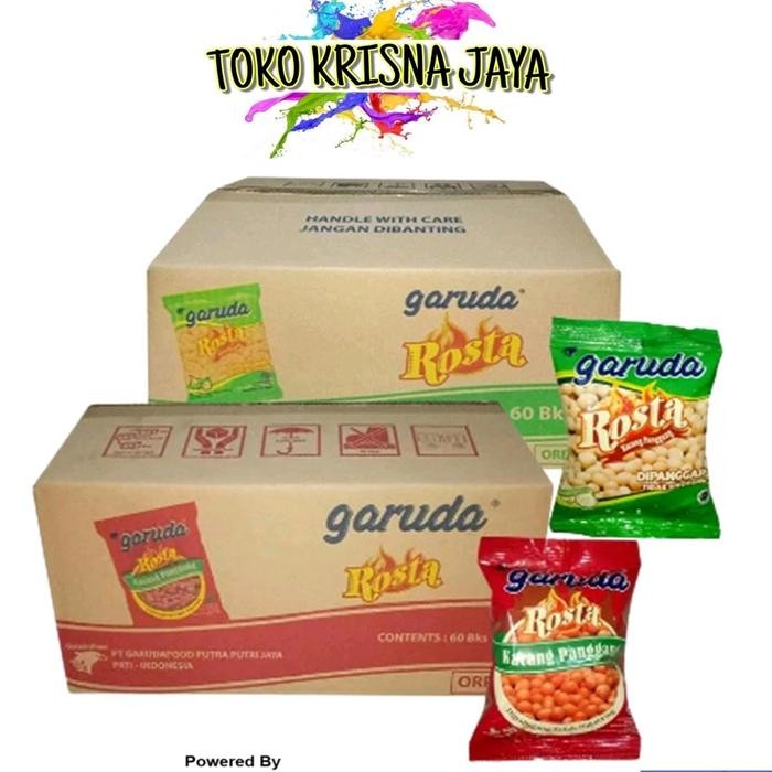 1 DUS GARUDA ROSTA KACANG PANGGANG RASA BAWANG | PEDAS KEMASAN 12 RENCENG X 10 PCS X 11 GRAM