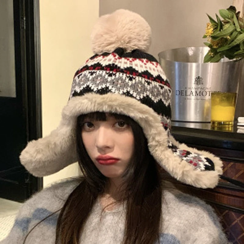 Детская шерстяная шапка EUMOAN Корейская версия в стиле ретро с лицом маленькая зимняя плюшевая утолщенная теплая защита ушей от холода Lei F