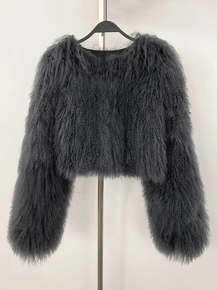 OFTBUY настоящая монгольская овечья шерсть женская зимняя высококачественная модная тибетская овечья меховая куртка новая натуральная шуба американская мода XXXL серый