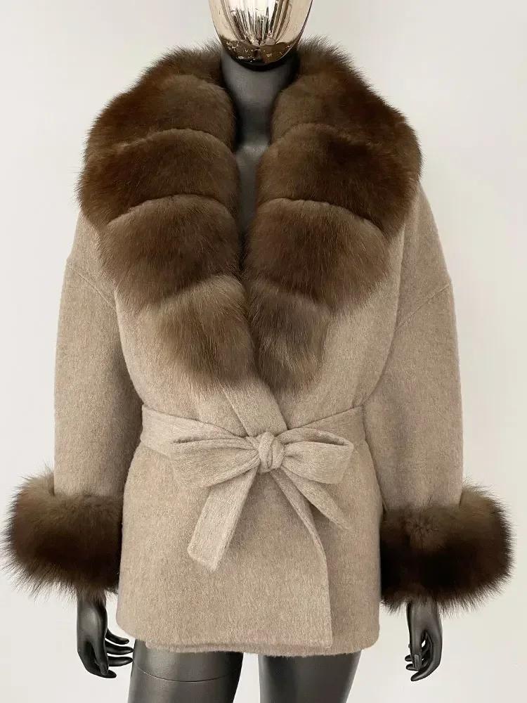 OFTBUY 2024 Зимняя куртка с карманом на поясе, натуральное пальто из натурального меха енота и лисицы, женская свободная верхняя одежда, повседневная верхняя одежда, уличная одежда S