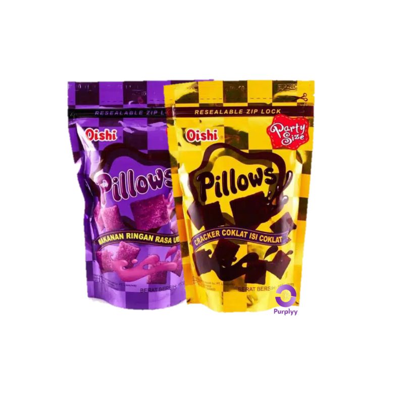 Oishi Pillows 110gr adalah satu-satunya camilan modern yang rasanya membuat para penikmatnya penasaran. Cemilan ini sudah menggoda hanya dengan melihat kemasannya. Spon renyah-lembut yang dibuat dari jagung dan beras dilumuri dengan lelehan cokelat dan cream ubi yang membuat meresap dan terkunci dalam pori-pori spon-nya.