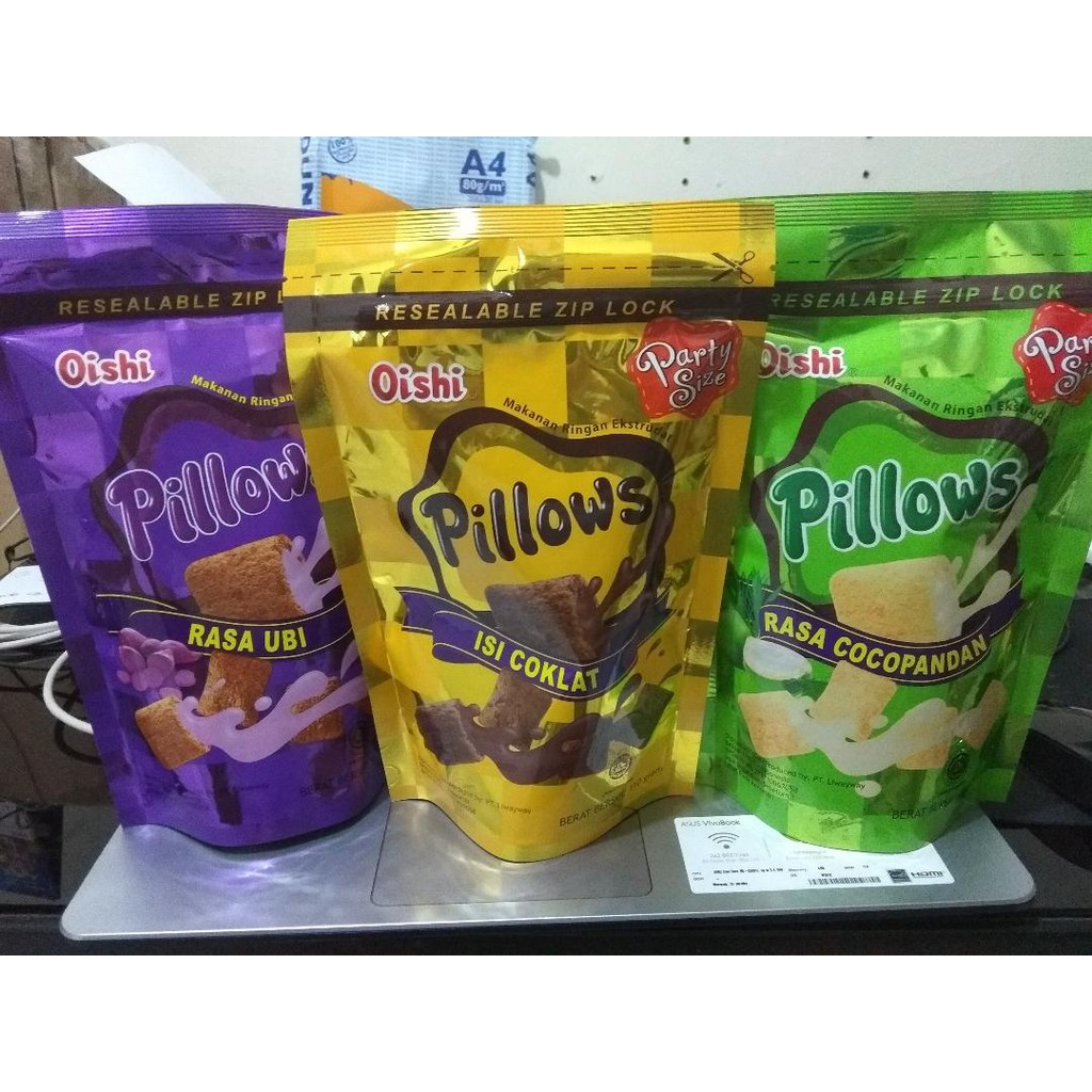 Oishi Pillows adalah makanan ringan ekstrudat, cemilan / snack yang modern dengan aneka rasa yang pasti enak dimulut bikin nagih terus.