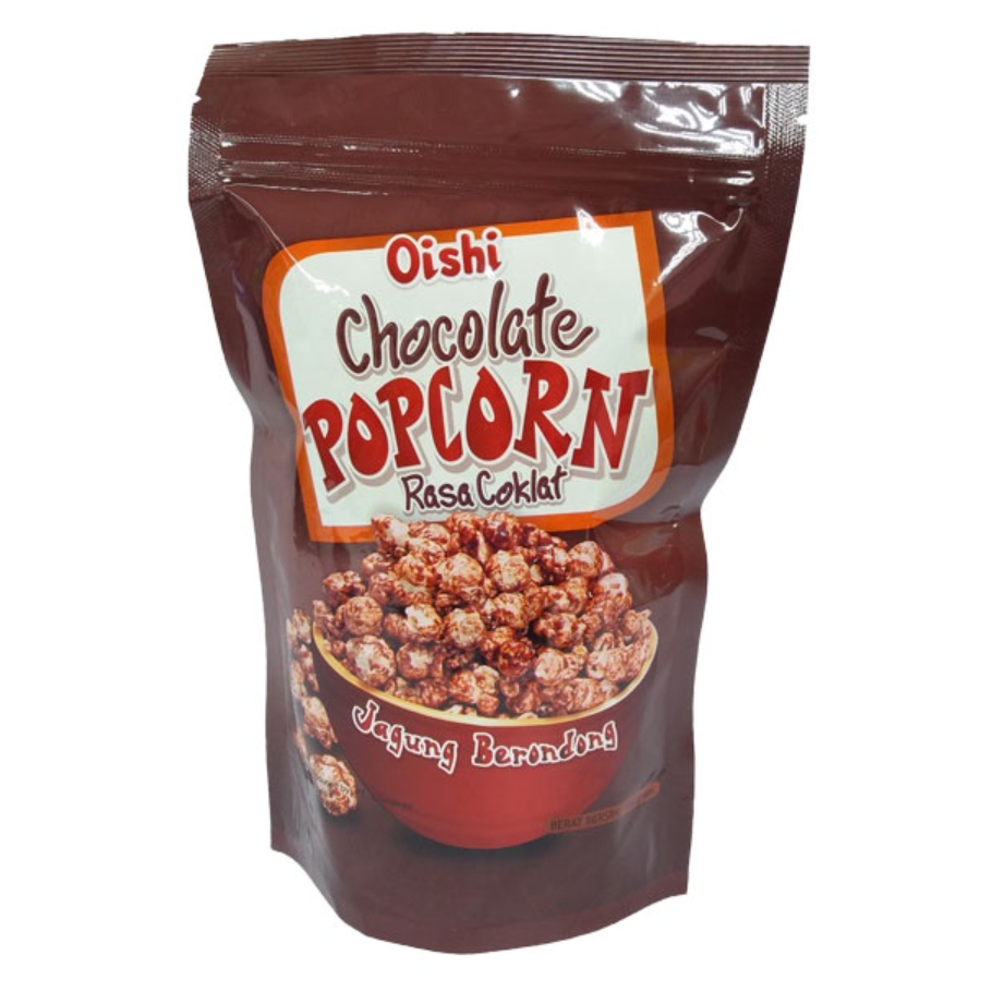 Oishi popcorn coklat Produk makanan ringan berkualitas dengan rasa coklat yang berbentuk popcorn
