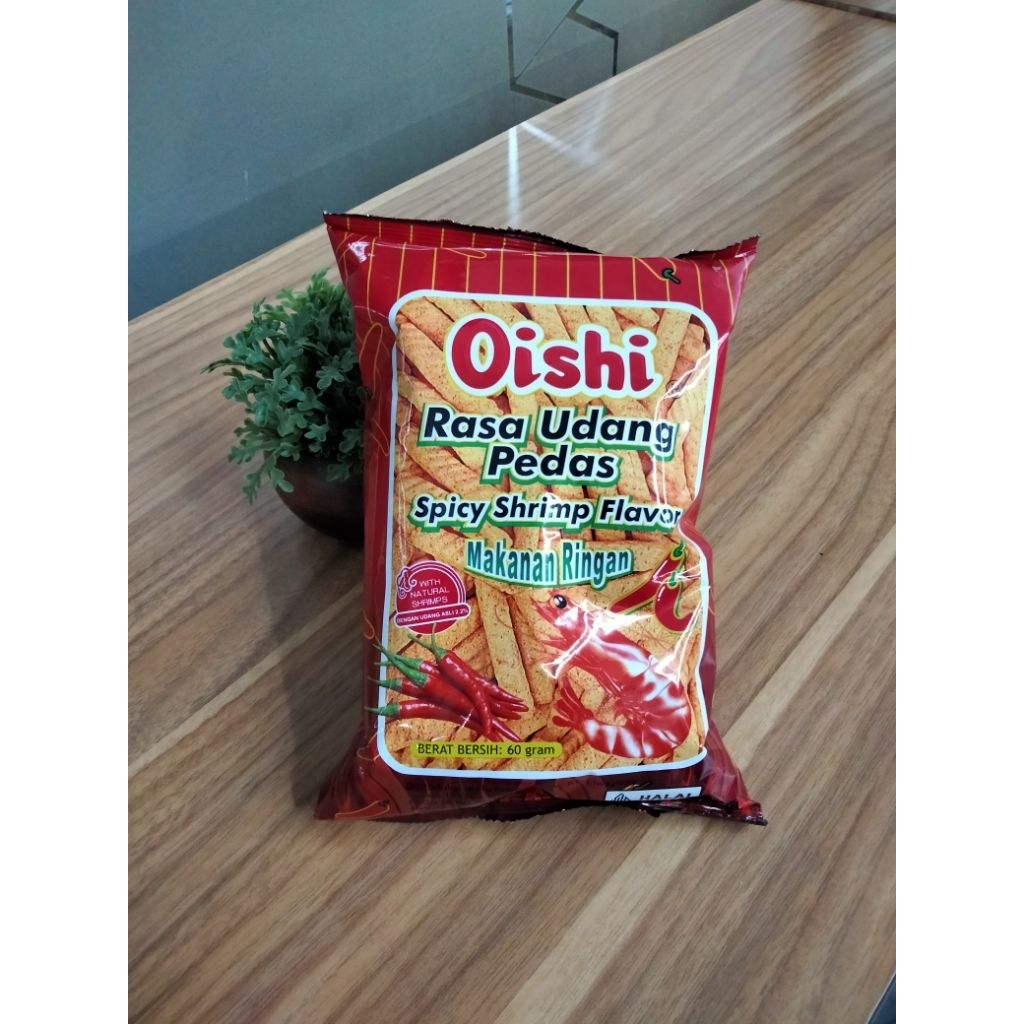 Oishi Rasa Udang Pedas adalah makanan ringan dengan rasa udang pedas yang gurih dan renyah. Produk ini terbuat dari tepung, udang, dan bumbu-bumbu lain seperti cabe, BBQ, dan penguat rasa.