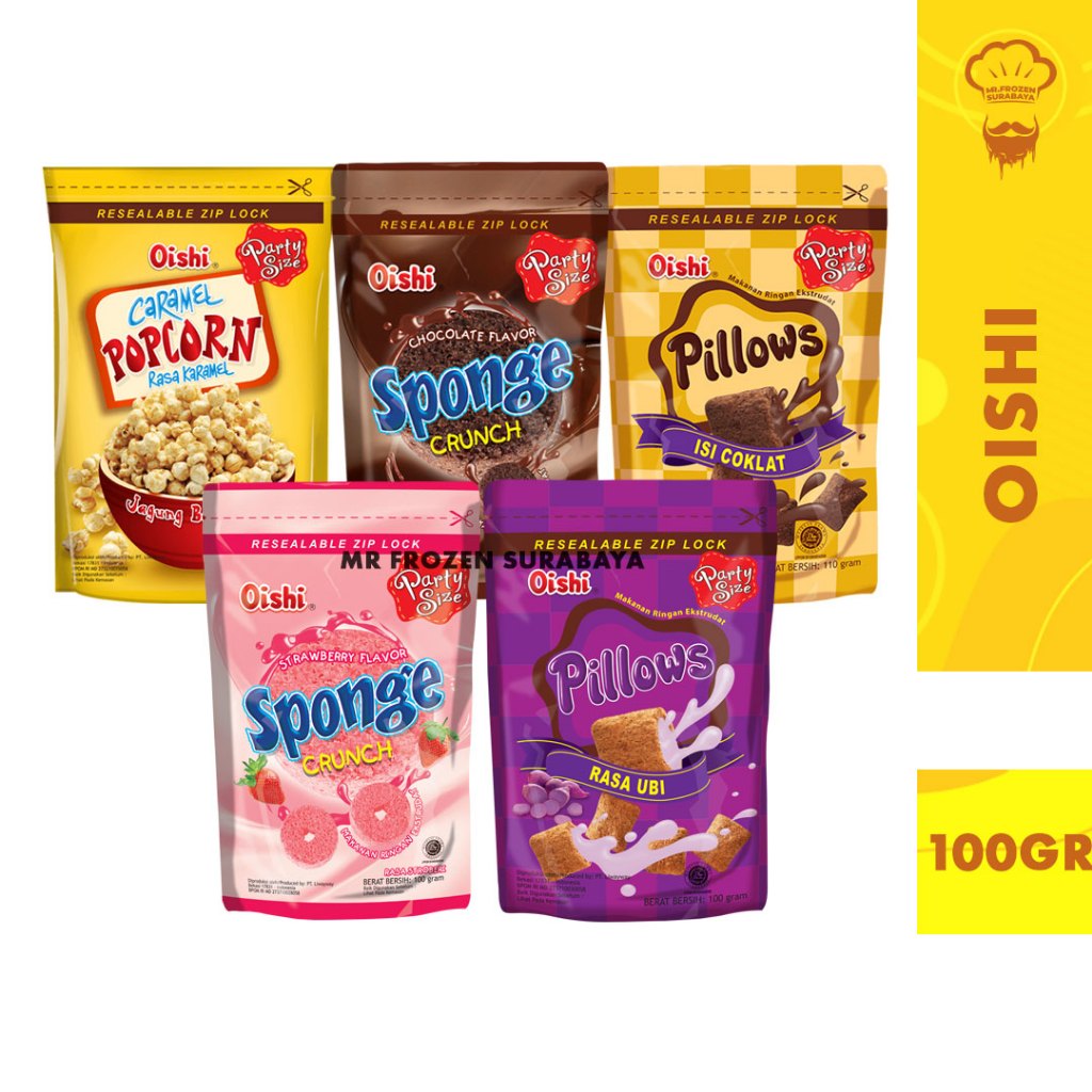 OISHI SNACK - SPONGE / PILLOW / POPCORN / RIN-BEE / SNACK UDANG PEDAS 100GR