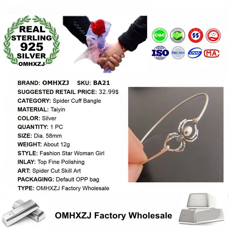 OMHXZJ, оптовая продажа, Европейская мода, женская модель, свадебный подарок, паук 925, манжета Taiyin BA21