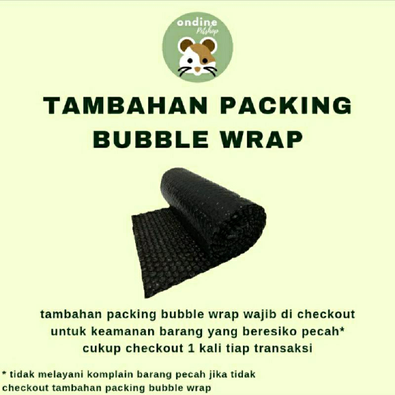 Tambahan packing bubble wrap wajib di checkout untuk keamanan barang yang beresiko pecah.