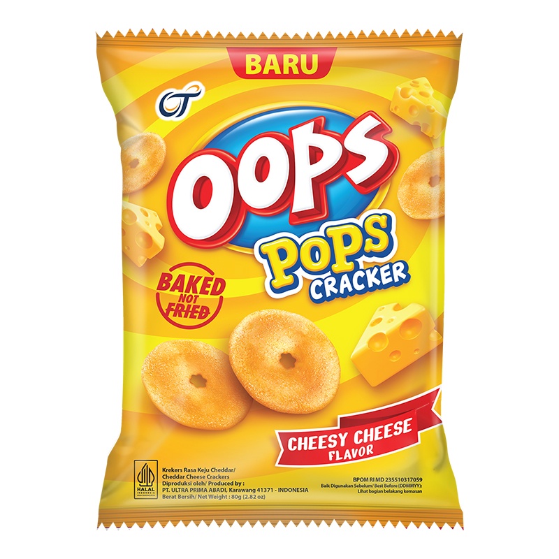 OOPS Pops Cracker Cheese 80 g merupakan crakers renyah dengan bentuk pops. Cracker ini memiliki rasa keju yang gurih dan lezat. Bumbunya berlimpah luar dan dalam. Tersedia dalam ukuran 80 gr.