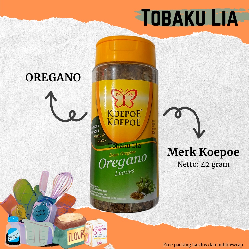 Oregano koepoe pilihan dari rempah rempah bermutu. diolah menjadi bubuk yg digunakan untuk segala macam makanan, dapat langsung dipakai untuk berbagai macam masakan