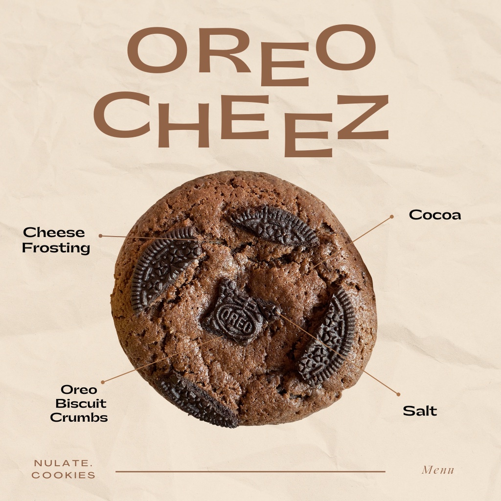 Rasa manis, crunchy di bagian luar, dan lembut di bagian dalam pada chocolate soft cookie dough dengan biskuit oreo, cream cheese sebagain isian di bagian dalam, dan dengan bahan premium lainnya. 100% HALAL!