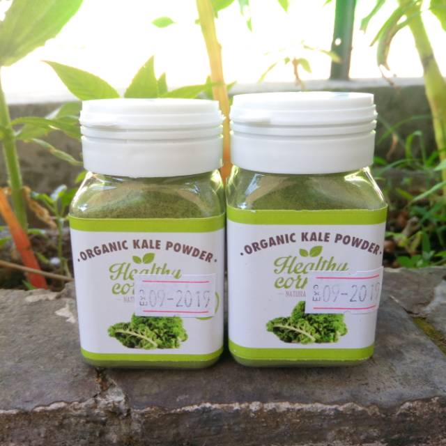 Meruoakan daun kale organik (tanpa gagang) yang dikeringkan dengan mesin dehydrator kusus untuk mencegah terjadinya nutrient loss.