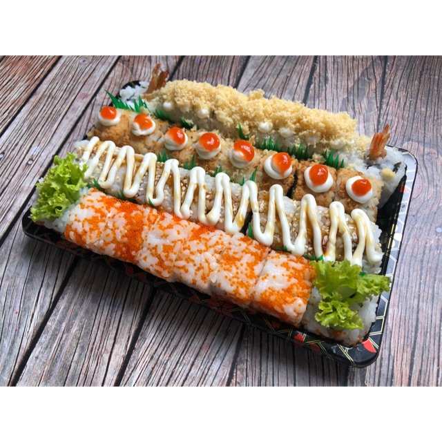 Party set ini cocok buat kamu pecinta seafood dan chicken . Ada california Roll, chicken teriyaki roll, chicken karaage roll dan ebi tempura roll