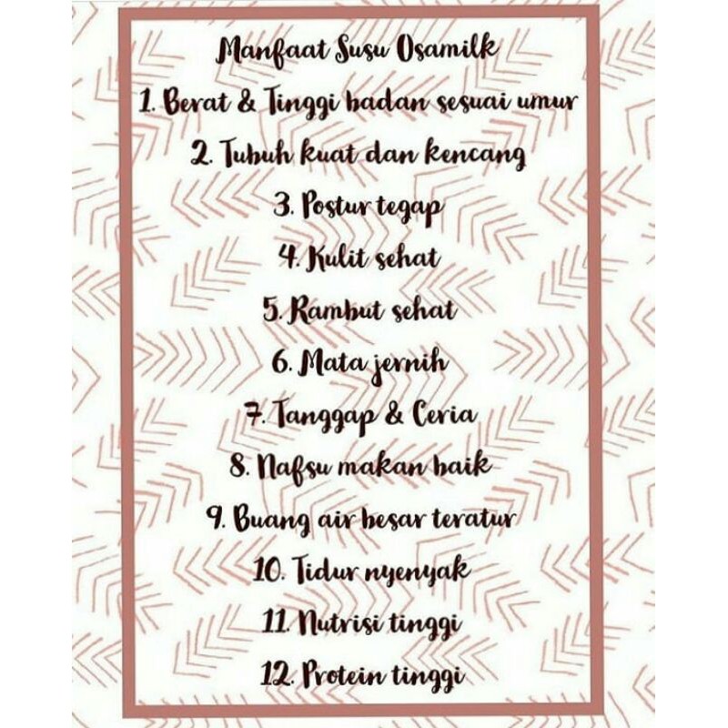 Oleh karena itu kami menjual Susu Osamilk yang merupakan salah satu produk olahan susu sapi segar, yang diracik oleh tangan - tangan ahli sehingga menghasilkan takaran protein serta kalori yang pas dan mudah dicerna oleh tubuh.