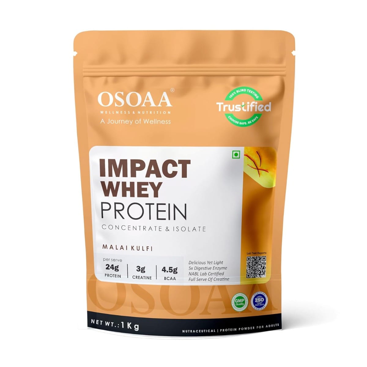 OSOAA Impact Whey Protein Powder Isolate & Concentrate Blend 24g Protein with 3g Creatine and 5X Digestive Enzymes Muscle Recovery & Performance Su...