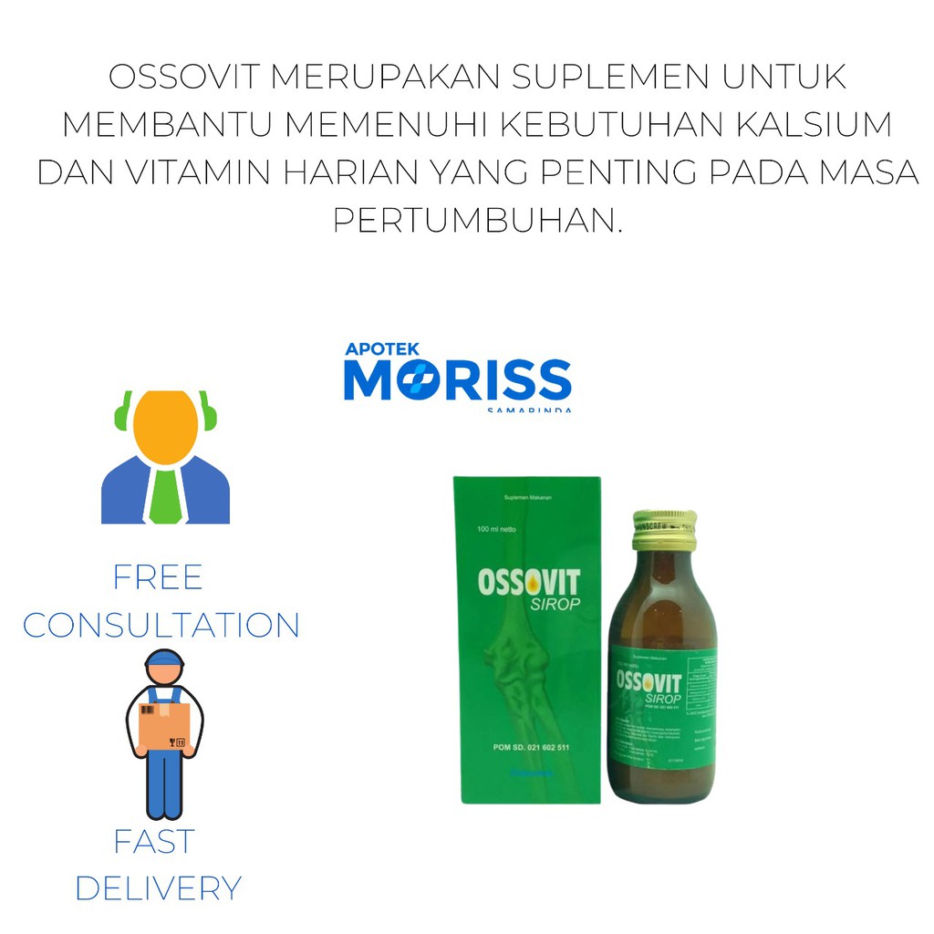 Ossovit Sirup adalah suplemen untuk membantu memenuhi kebutuhan kalsium dan vitamin harian yang penting pada masa pertumbuhan, membantu mencegah dan meringankan gejala osteoporosis, membantu pertumbuhan dan perkembangan tulang.