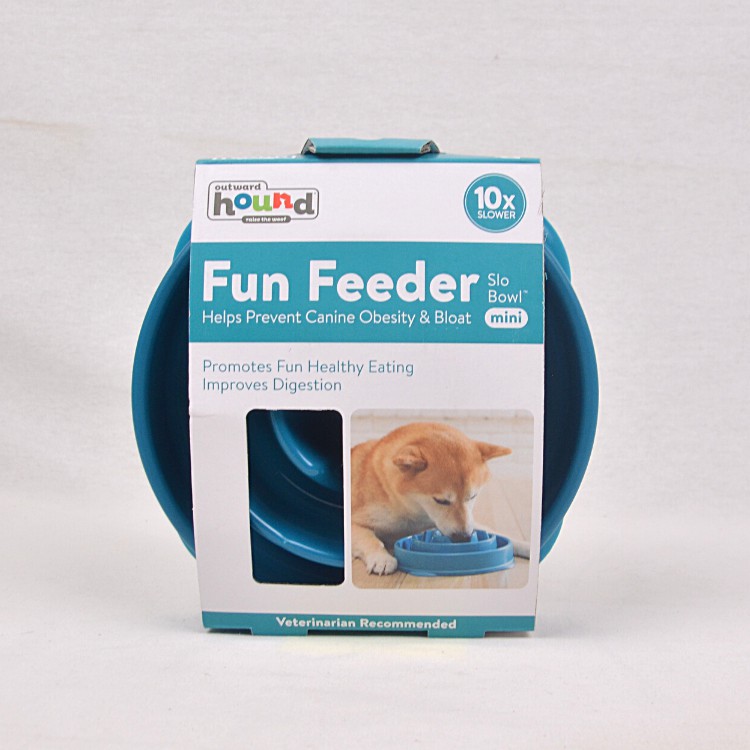 OUTWARD HOUND Fun Feeder DROP Turqouise MediumWhy do dogs feel like eating has to be a race? We have no idea, but we solved the problem anyway. Featuring meal-lengthening ridges and mazes, Fun Feeders keep pups engaged for up to 10x longer at chow time, which improves digestion while helping furry friends eat at a fun, healthy pace!FOOD IS FUN: Dogs love food and Outward Hound Slo-Bowls make feeding them fun too! Your dog will love maneuvering their mouth over these playful patterns and will digest their food at a healthier pace.UP TO 10X SLOWER: Outward Hound SloBowl Fun Feeder dog bowls slow down your dog’s eating time and aid digestion by 10X!A PRODUCT WITH PURPOSE: Bloating, regurgitation and canine obesity are all real factors of poor digestion in dogs. That’s why we created our SloBowl Fun Feeders with puzzles that challenge and engage your dog during mealtime while helping them to digest their dog food.PORTION CONTROL ON POINT: Outward Hound Slo Bowls are made in 3 different sizes to help you control their portions during mealtime. Large Slo Bowls hold up to 4 cups of dry kibble, the Slo Bowl Fun Feeder Minis hold 2 cups, and the mini holds 3/4 cup. Both bowls are great for dry, wet and raw fed diets.QUICK CLEANING: Nobody likes a dirty dog bowl. To clean your Fun Feeder Slo-Bowls, simply place the bowl on the top rack of your dishwasher. Your dog’s bowl will come out shining like new and remove the yucky germs and dirt we don’t want them eating.BENEFITS :Promotes fun healthy eatingHelps prevent bloat, regurgitation & canine obesityMade with high-quality, food-safe ABS plasticFeatures non-slip base to hold bowl in placeLead & Phthalate FreeHolds up to 2 cups of dry dog foodSize Dimensions : L 22,8cm x W 20,3cm x H 6,6cm