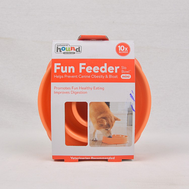 DescriptionOutward Hound Fun Feeder, Slo-Bowl – SWIRLThe Outward Hound Fun Feeder is an interactive slow feeder designed to stimulate your dog and relieve boredom. It is a natural, healthy and playful solution for dogs that gobble their kibble too quickly. The nature-inspired designs promote natural eating habits by requiring dogs to forage for their feasts.The Bowl’s unique patterns put brakes on overeager eaters by making their food hard to reach. Scatter their food across the slow feeder and watch your dog ‘work’ to push it out. Your dog learns to chase their food through the maze of ridges and valleys and the non-slip rubber on the base keeps the bowl in place.By prolonging feeding times the Outward Hound Fun Feeder reduce the risks for bloat, regurgitation, gas and canine obesity, resulting in a happier and healthier dog. Veterinarians agree that slower feeding is safer feeding.Features:Features non-slip base to hold bowl in placePromotes natural eating habitsCanine boredom busterSpecially designed to slow down your pooch when eatingHelps prevent bloat, regurgitation, and canine obesityMade with high-quality, food-safe materialsThree designs, three colours, two sizesEasy to clean – Just place in the top drawer of the dishwasher.Holds up to four cups of dry dog foodThis Fun Feeder also comes in a mini size, making it perfect for small dogs and puppies (2 cups)PATTERN : SWIRL Sizes: Large – 7cm (h) x 30cm (w) x 32cm (l) , 4 cupsMedium -:L 22,8cm x W 20,3cm x H 6,6cm
