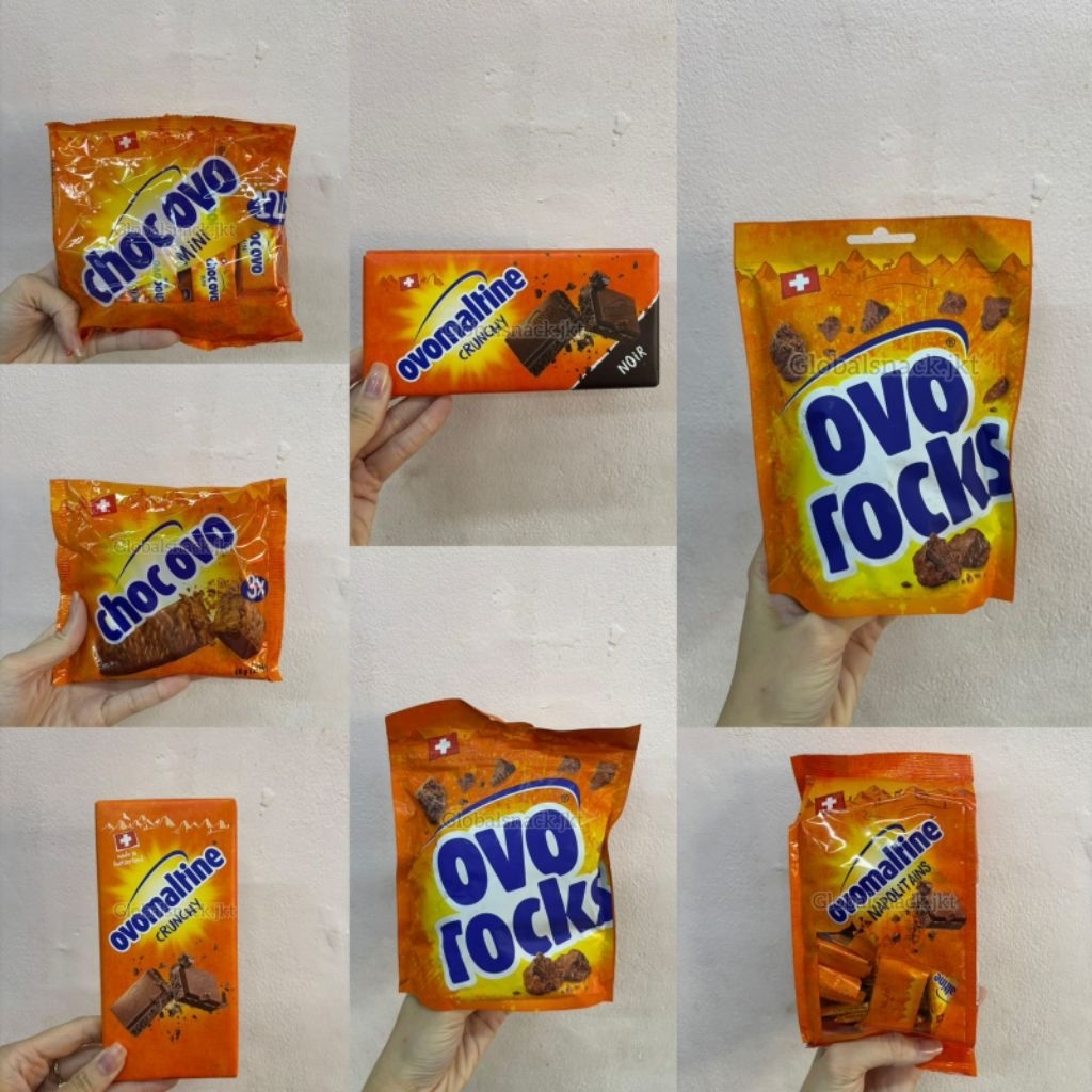 OVOMALTINE NAPOLIATINS / OVOMALTINE CRUNCHY ORIGINAL BAR NOIR CHOCOLATE / CHOC OVO MINI 12X / CHOC OVO BAR / OVO ROCKS