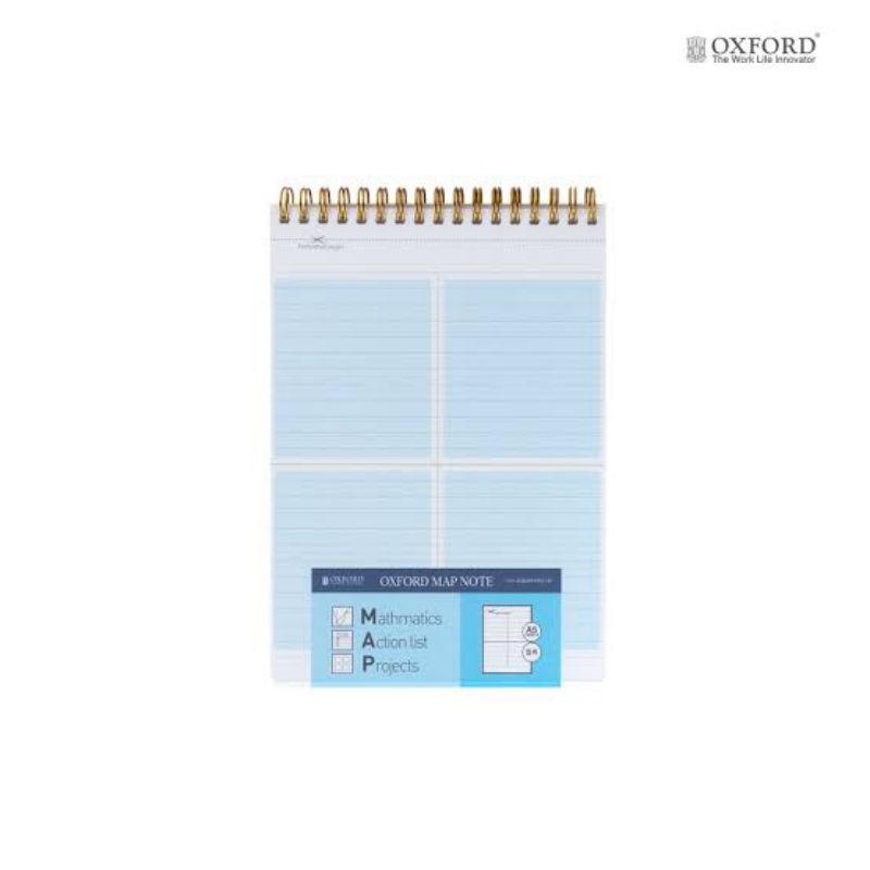 Notebook Oxford MAP Spiral A5 Topbinding dijilid menggunakan spiral kawat (wire-o binding).