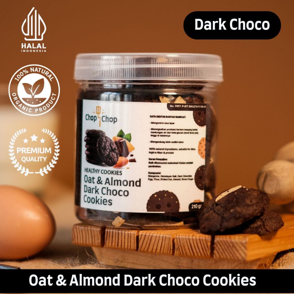 Oat & Almond Dark Choco Cookies - Cookies Sehat Rendah Kalori