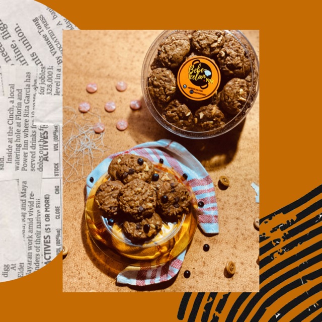 Oat choco cookies terbuat dari oat yang berserat tinggi, kacang mete dan butter wisman yang gurih, serta chocolate chips dan palm suiker yang manis.