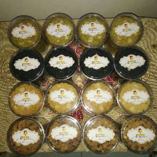 Bahan Rasa Coklat : Mentega, Oatmeal, Terigu, Gula, Garam, Vanili, Baking Powder, Coklat Parut, Coklat Chocochip, remahan almond, almond.