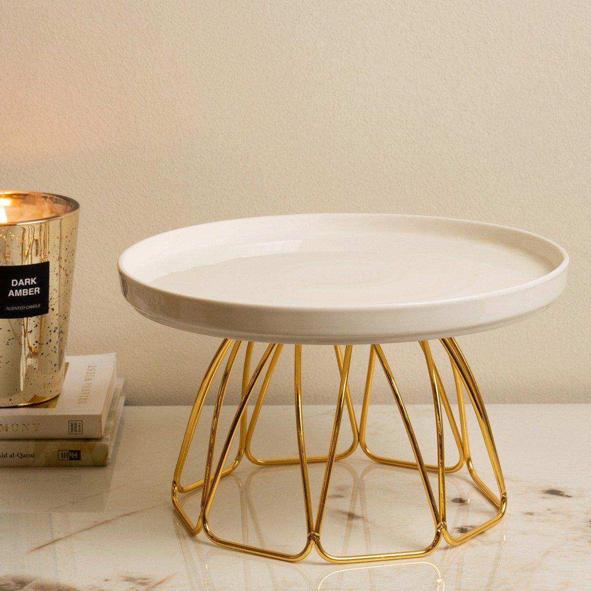 Octa glass footed plate gold 24x24x18 cm