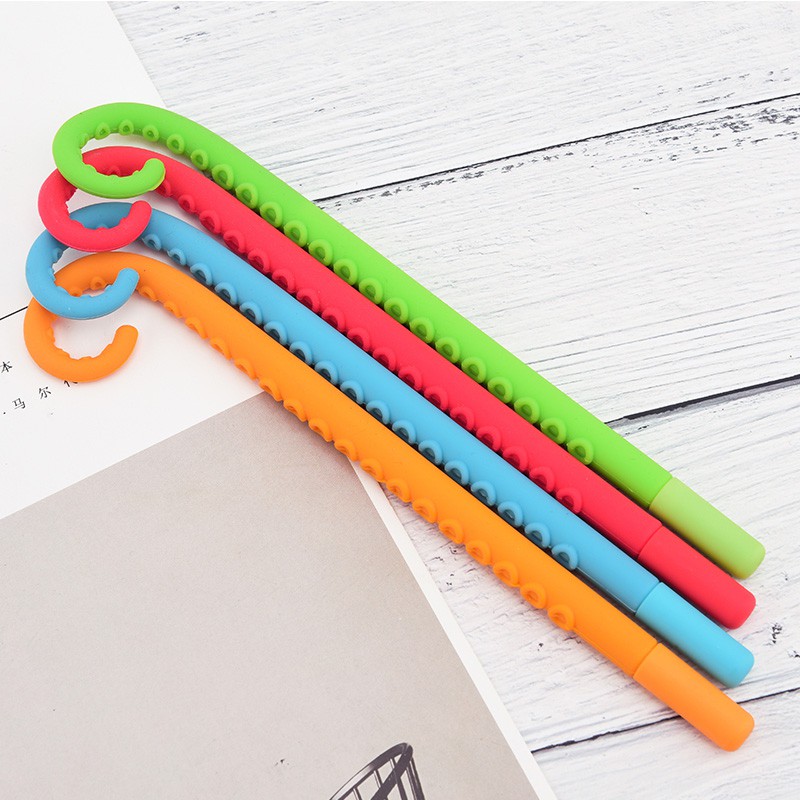 Satu Set Berisi 4 Pena Dalam Warna Merah, Biru, Hijau, Jingga Dengan Model Yang Terinspirasi Dari Tentakel Gurita Yang Menggemaskan!