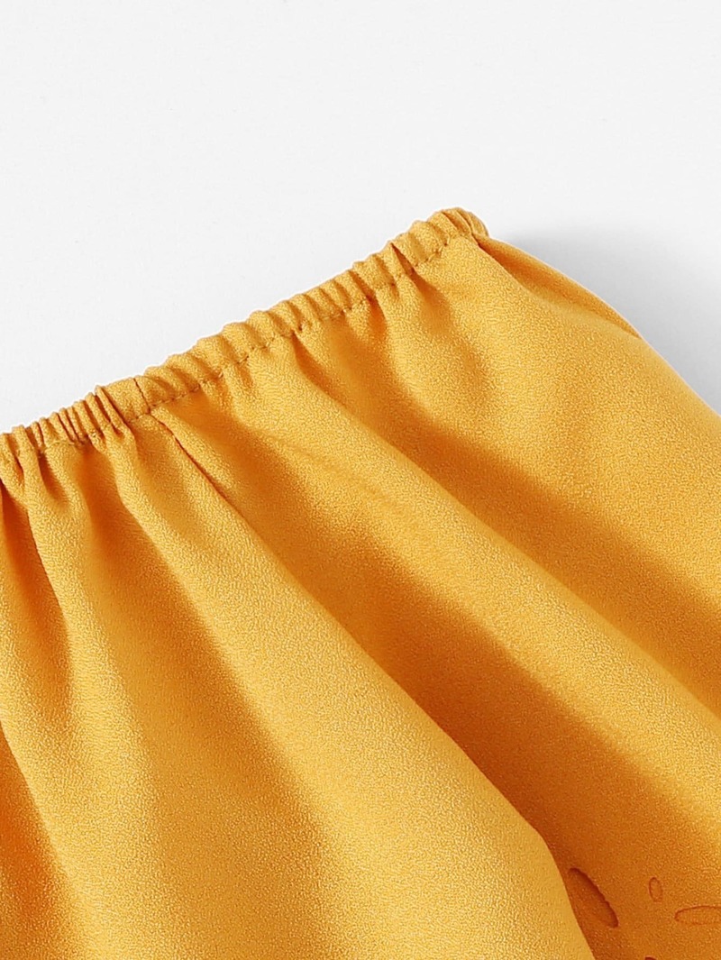 Off Shoulder Hollow Out Solid Blouse, Yellow