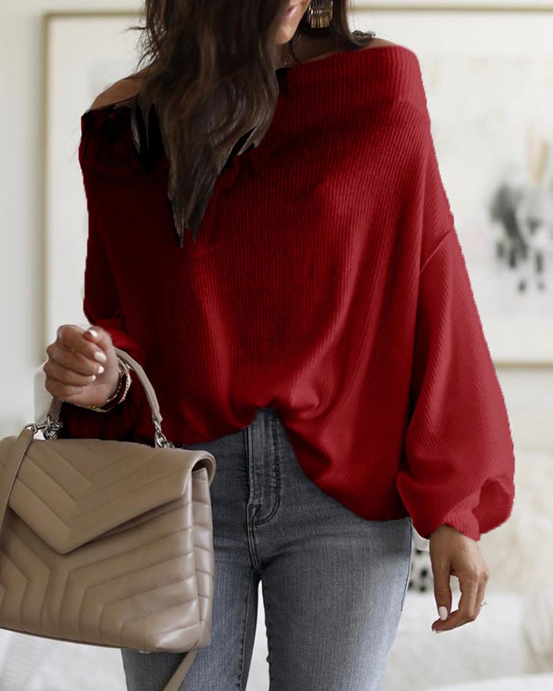 Off Shoulder Lantern Sleeve Ribbed Blouse