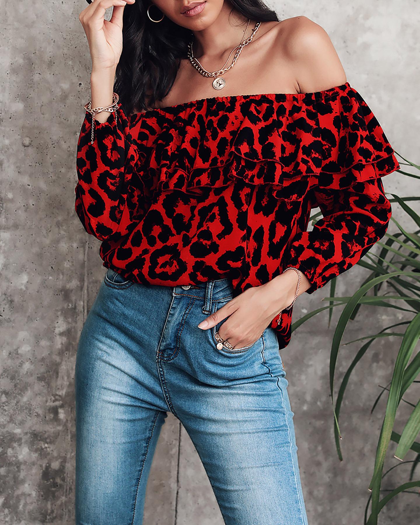 Off Shoulder Layered Ruffle Top, Red