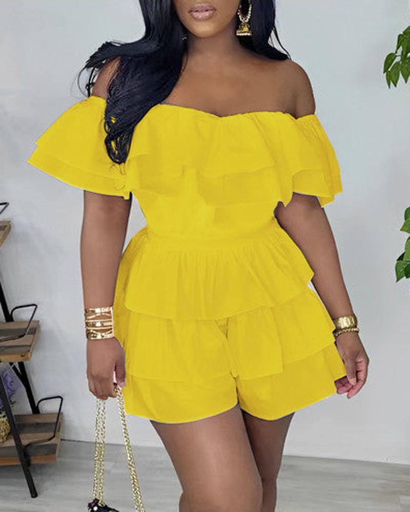 Off Shoulder Layered Ruffles Romper, Yellow