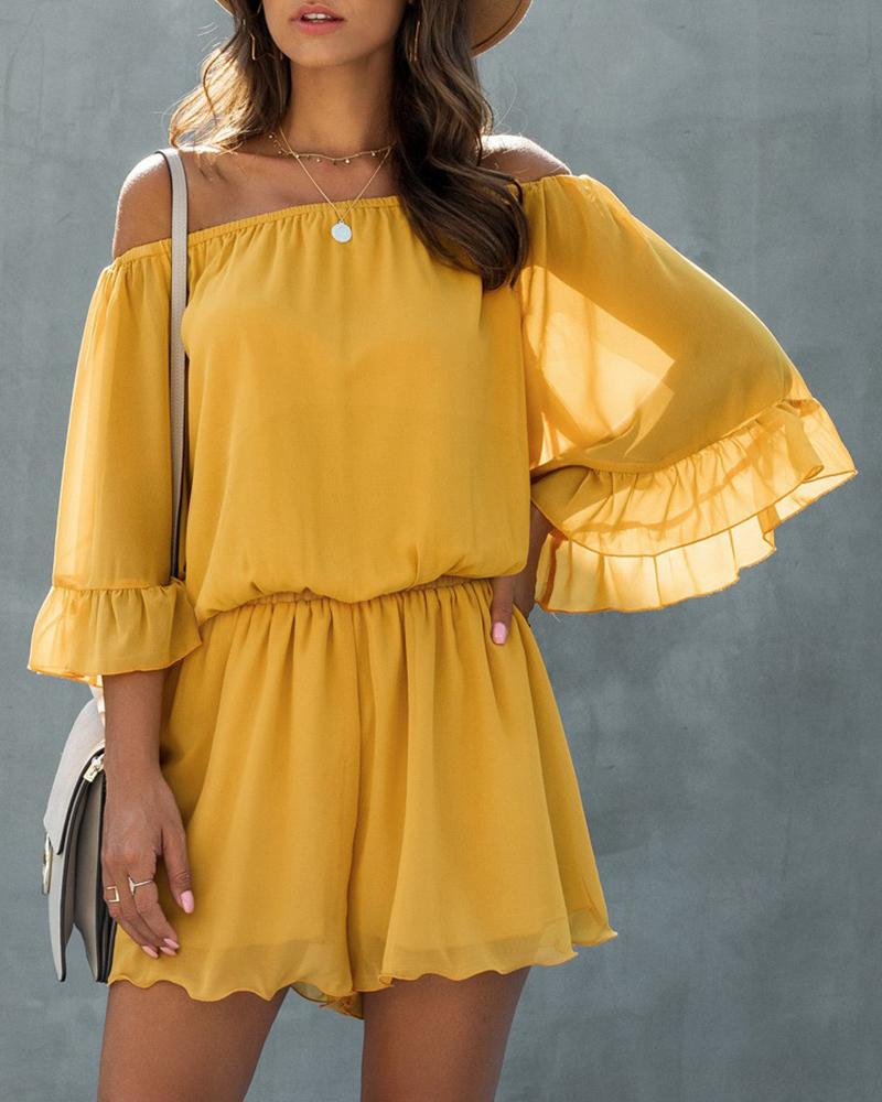 Off Shouler Ruffles Long Sleeve Casual Romper, Yellow